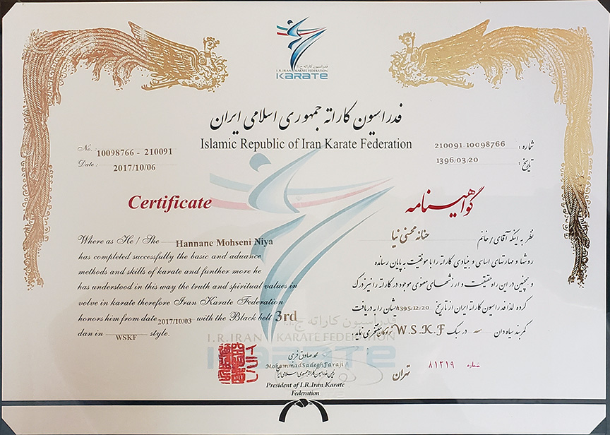 • 6th Dan (degree) black belt from world Karate Federation (WKF)