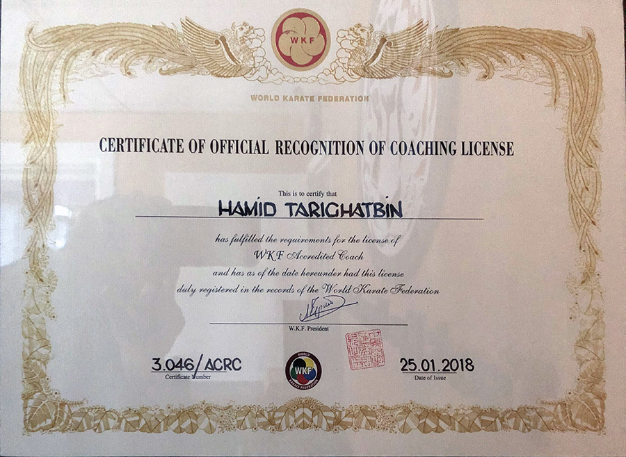 • Certificate of Official Recognition of Coaching License (WKF)
