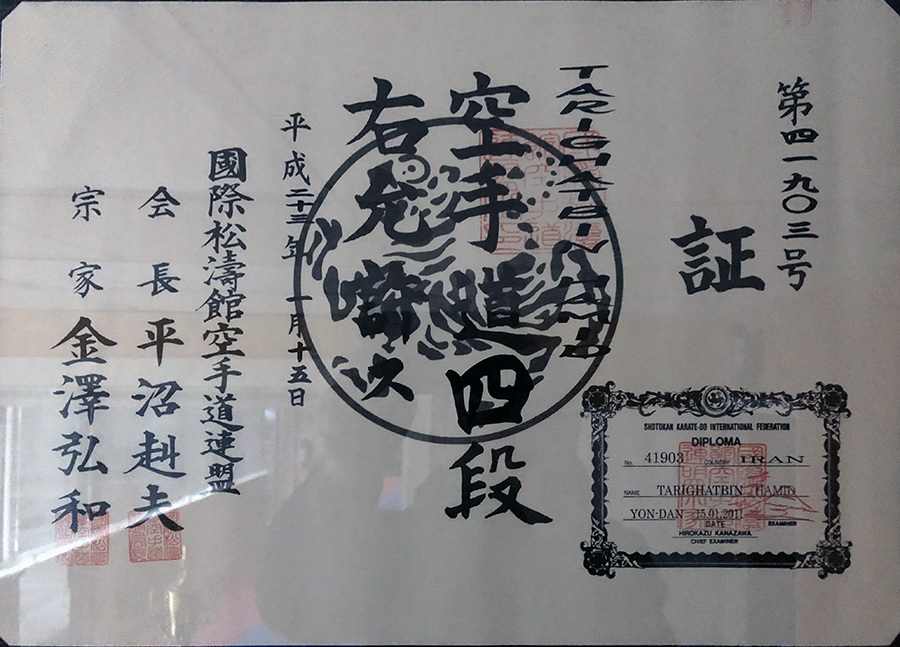 • 4th Dan (degree) black belt from Shotokan karate international federation (Hirokazu Kanazawa SKIF)